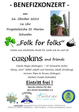 Am Sonntag, den 26.10.25 um 16:00 Uhr findet ein Benefizkonzert zugunsten des Vereins Unsichtbar e.V. statt. Es musizieren die COROLANS & FRIENDS. Der Eintritt ist frei, um eine Spende wird gebeten.